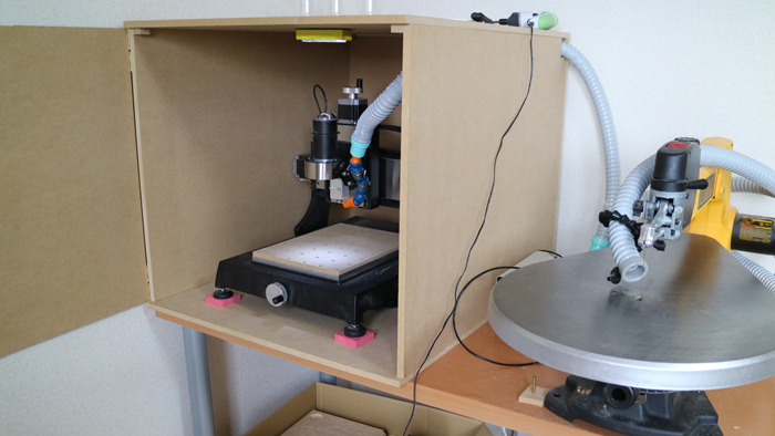 作品に木材を多用する完吾さんはこれまで糸鋸を使い多くの部品を加工されてきている。そんなこともあり「工房に当社のKitMill RZ300を置いてくれてはいるが、材料をたくさんのネジで固定したり、いちいち加工データをつくるよりも糸鋸でやったほうが早いって思っているんじゃないかな。」そんなことを思いながら、ふと取材中に工房を見渡して見るとRZが置かれている作業台の下に数え切れないほどの加工された木材が置かれているのが見えた。(正直ここまで活用いただけていると思わなかったので本当に嬉しかった。)