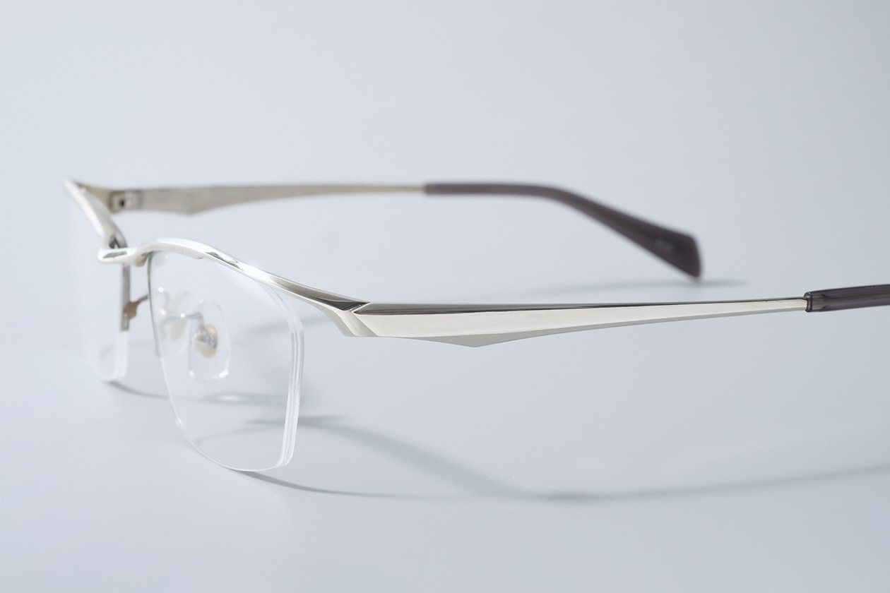 生産と企画を内製化しているノウハウが活かされているのだと思います。ロウ付け部分は、熱が短時間で加わる事で、荒れが少ない美しい表面をつくれる機械を自社で開発しました。生産が難しい、例えばコンビネーションフレーム(樹脂と金属の部品が合わさったフレーム)は樹脂の時間経過による伸縮率を経験から見越してつくっています。