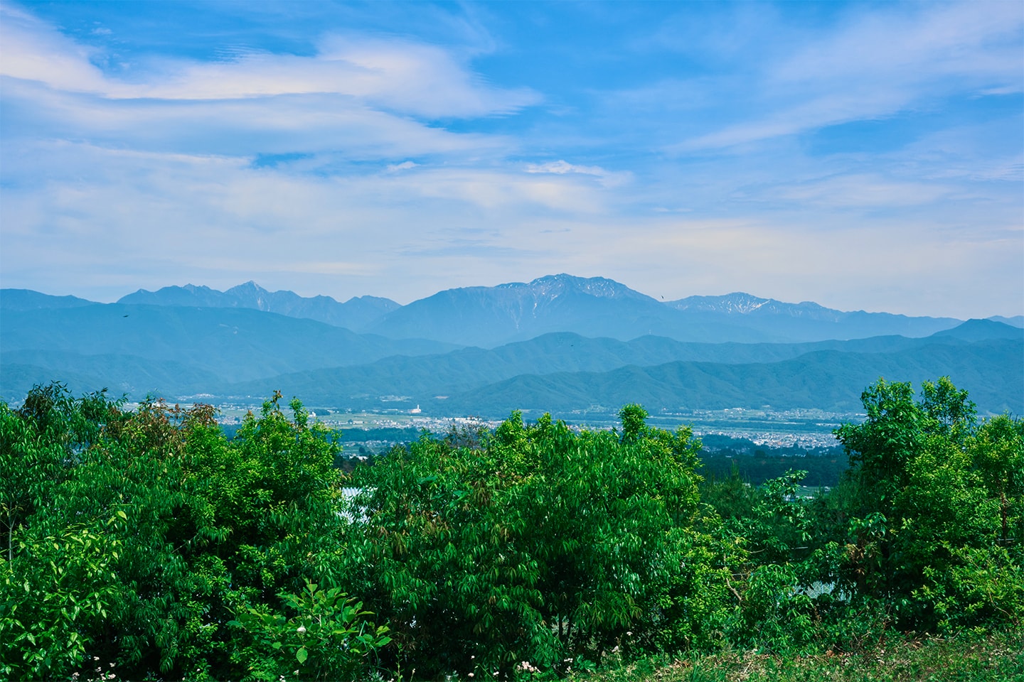 淵岡さんがこの土地に移住するきっかけとなった南アルプスの山並みの綺麗な風景