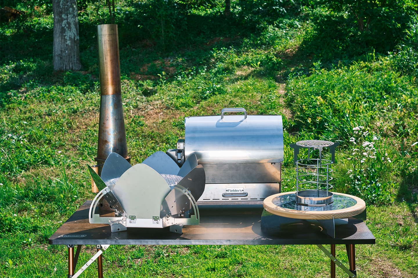 ちなみに外で食べるものって美味しさが格別なので、野外で炎と食を楽しむアイテムは多いですね。美味しくなる加熱温度とか、旨味を引き出す伝統的なレシピの情報をもとに設計したりします。それを仕上げに良い炭で調理してね。