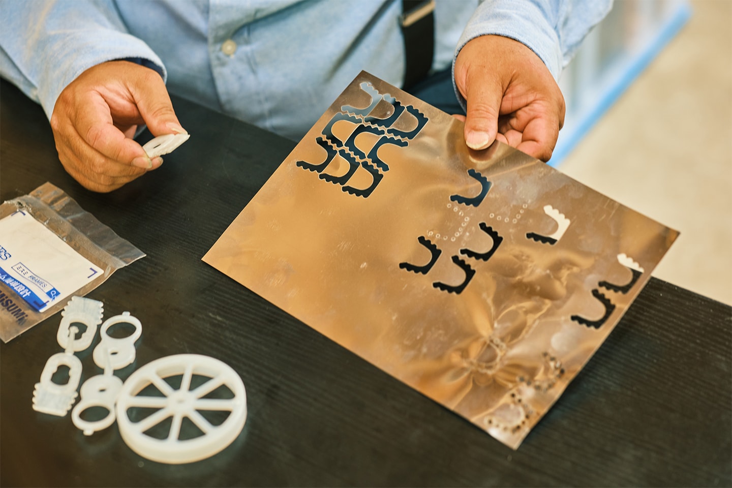 樹脂部品を外注すると、小さい部品作るんでも成形型代が100万円以上かかって最小発注数が1万個とかやったりします。そんな大量に作っても一気に売れないし、それ使い終わるまでなんもできませんってことになると、次へ進まれへんやないですか。そうじゃなくて、少量作って気づいたことがあったら改善して、在庫も必要な分だけ作って置いとくとか。中小メーカーこそそういった小回り効かせていかなというわけで、これまで樹脂部品はあえて避けてきました。