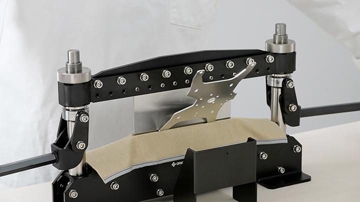折り曲げ時に「キズ防止シート」を使用することで、材料に曲げキズが付くのを防げます。