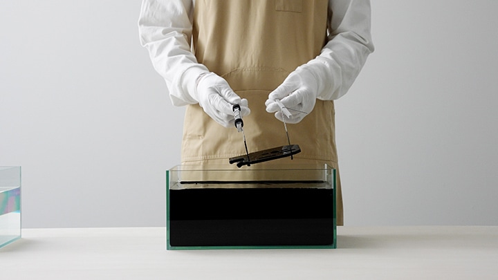 やけどや失明の原因となるので、保護メガネやゴム手袋を着用して作業を行ってください。