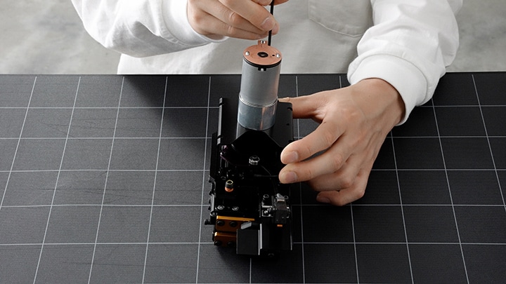 被覆を剥くカッターの刃を取り付け、モーターへ配線をすれば完成です。