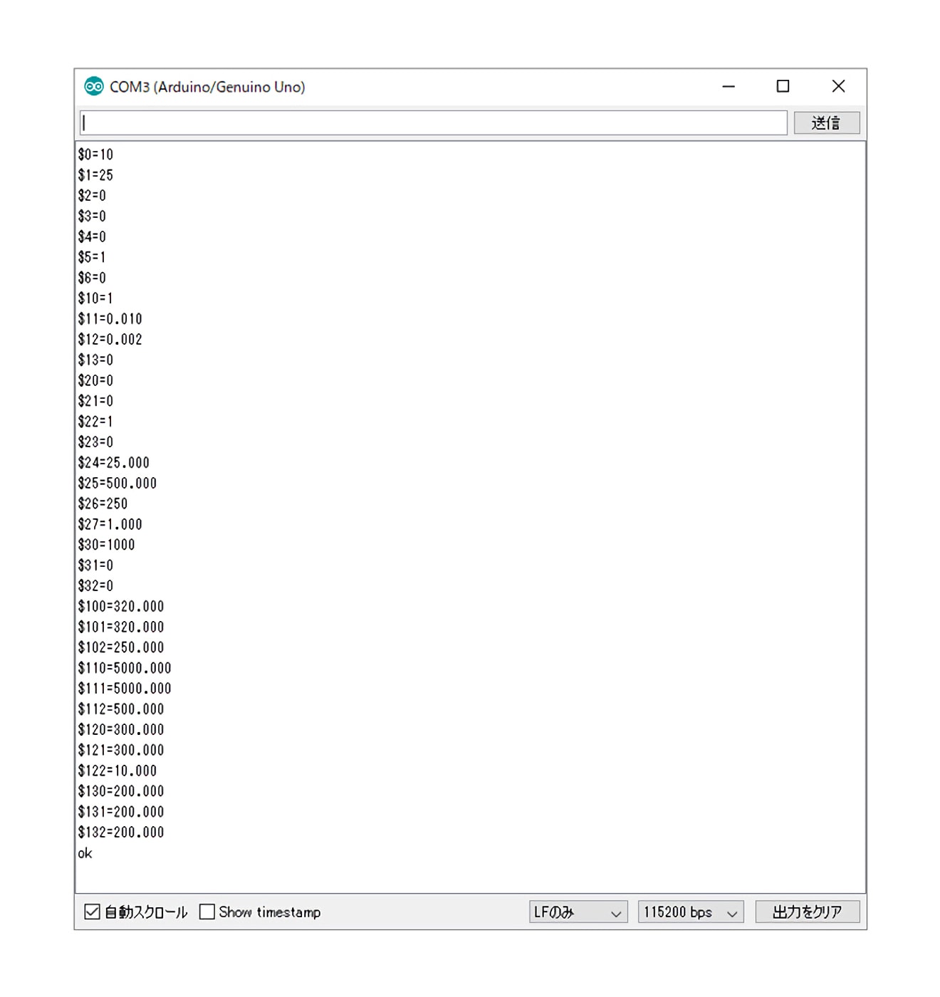 なお、この回路を使用するときは、Gbrlの設定の$5(limit pins invert)を1に変更にする必要があります。