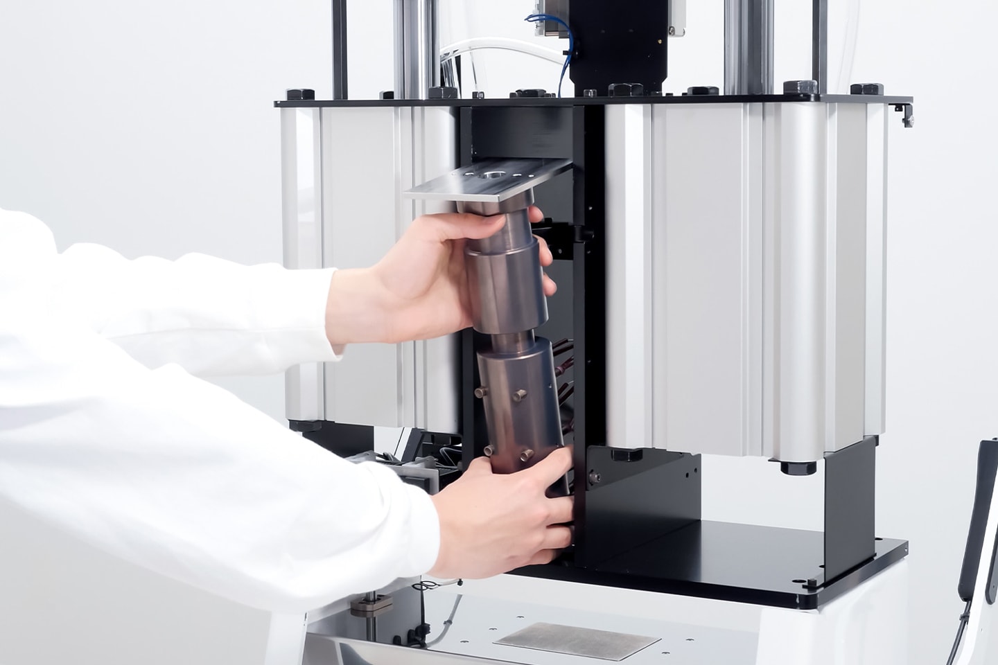 また、「INARI P35」で材料を変えて成形する場合、このようにシリンダーごと簡単に入れ替えることが可能です。さらにメンテナンスも簡単なため、今回のように繊維などが混ざった材料で成形する場合でも、詰まりなどのトラブルを気にせず試作できます。様々な材料をその場で試すことができれば、検証や比較が手軽になり、より精度を高めたものづくりを実現できます。