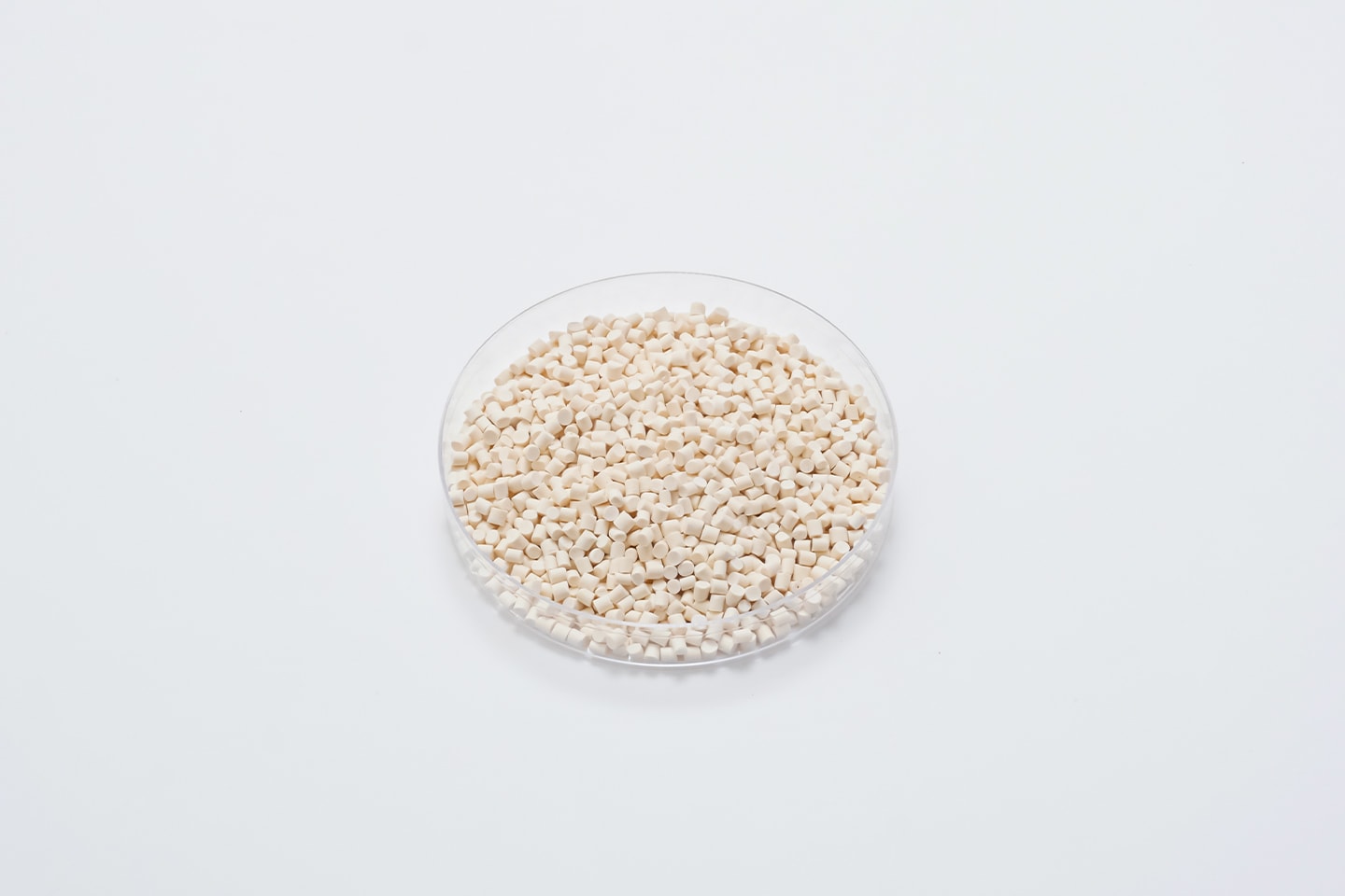 成形前のペレットと比較してみてもほとんど違いがなく、ライスレジン本来の乳白色で成形できています。ゲートの幅と形状を調整したことで樹脂が流れやすくなり、このように安定した品質の成形を実現できました。