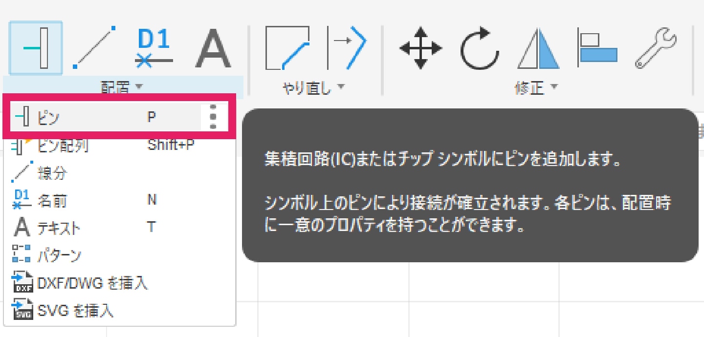シンボルは、見た目の美しさよりも、意味が正しく伝わることが重要です。各ピンがどの役割(GND、電源、信号など)を持つかを意識して作成します。