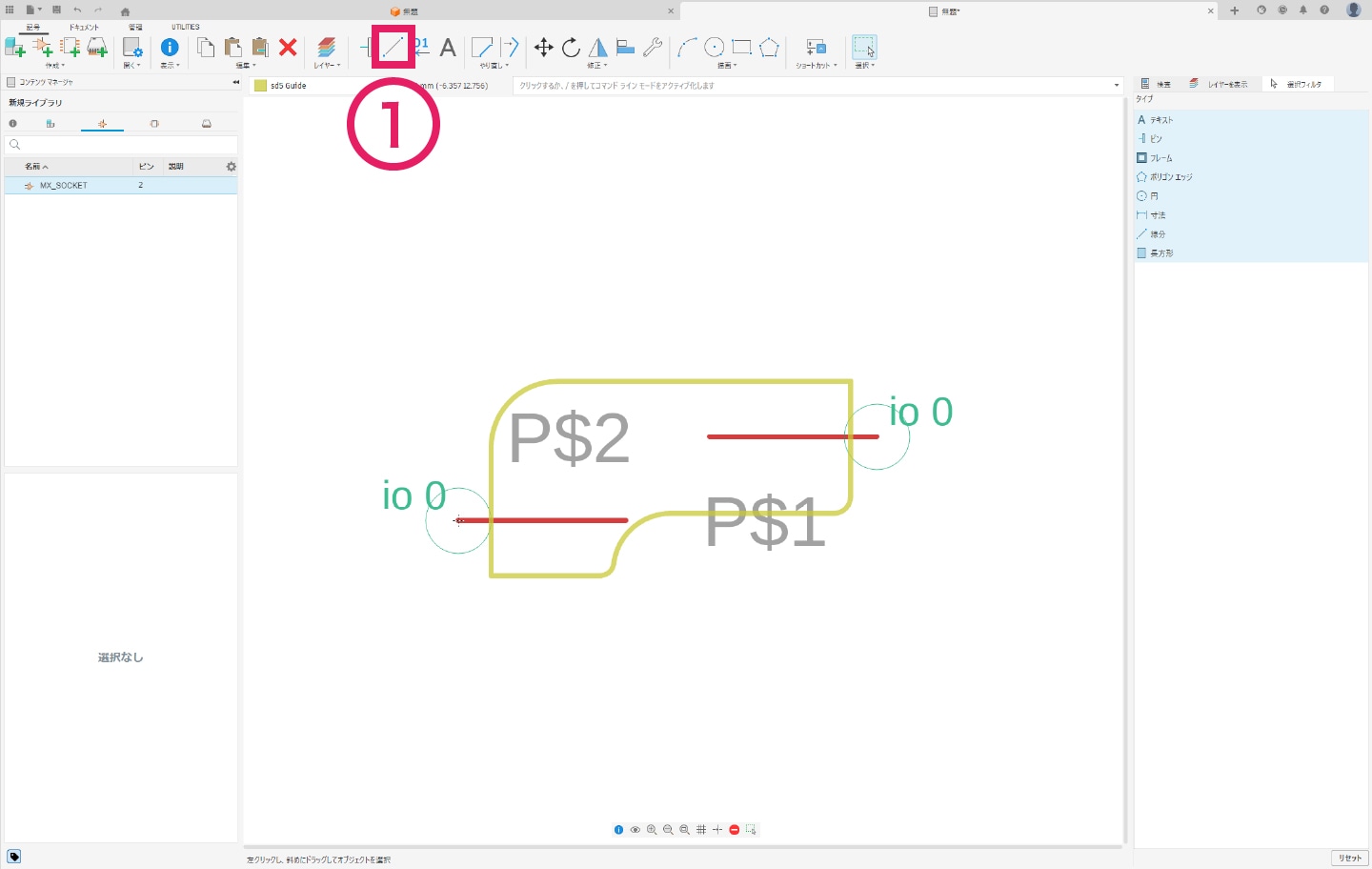 3-2-4|① [配置]タブより「線分」コマンドを選択し、外形を描きます。これで、シンボルの作成は完了です。