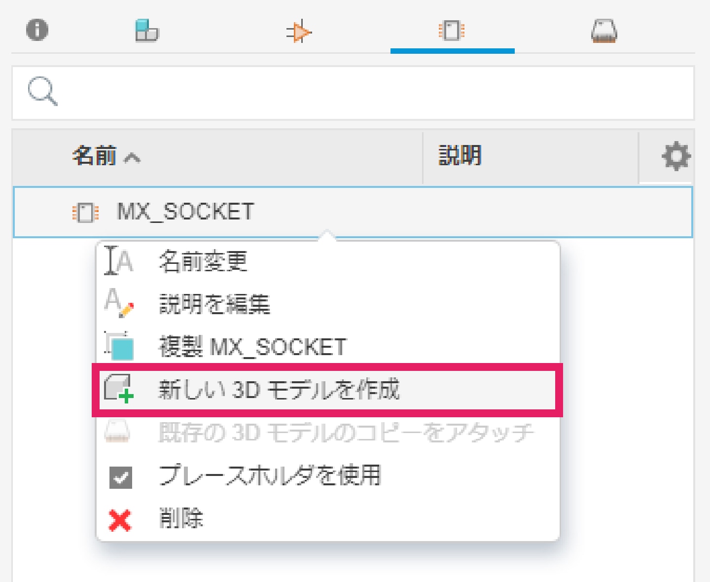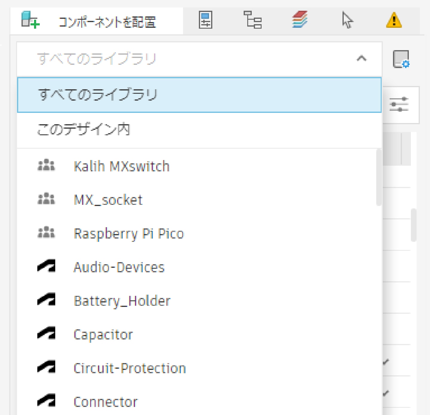 基板設計に使用するコンポーネントを管理する場所。
