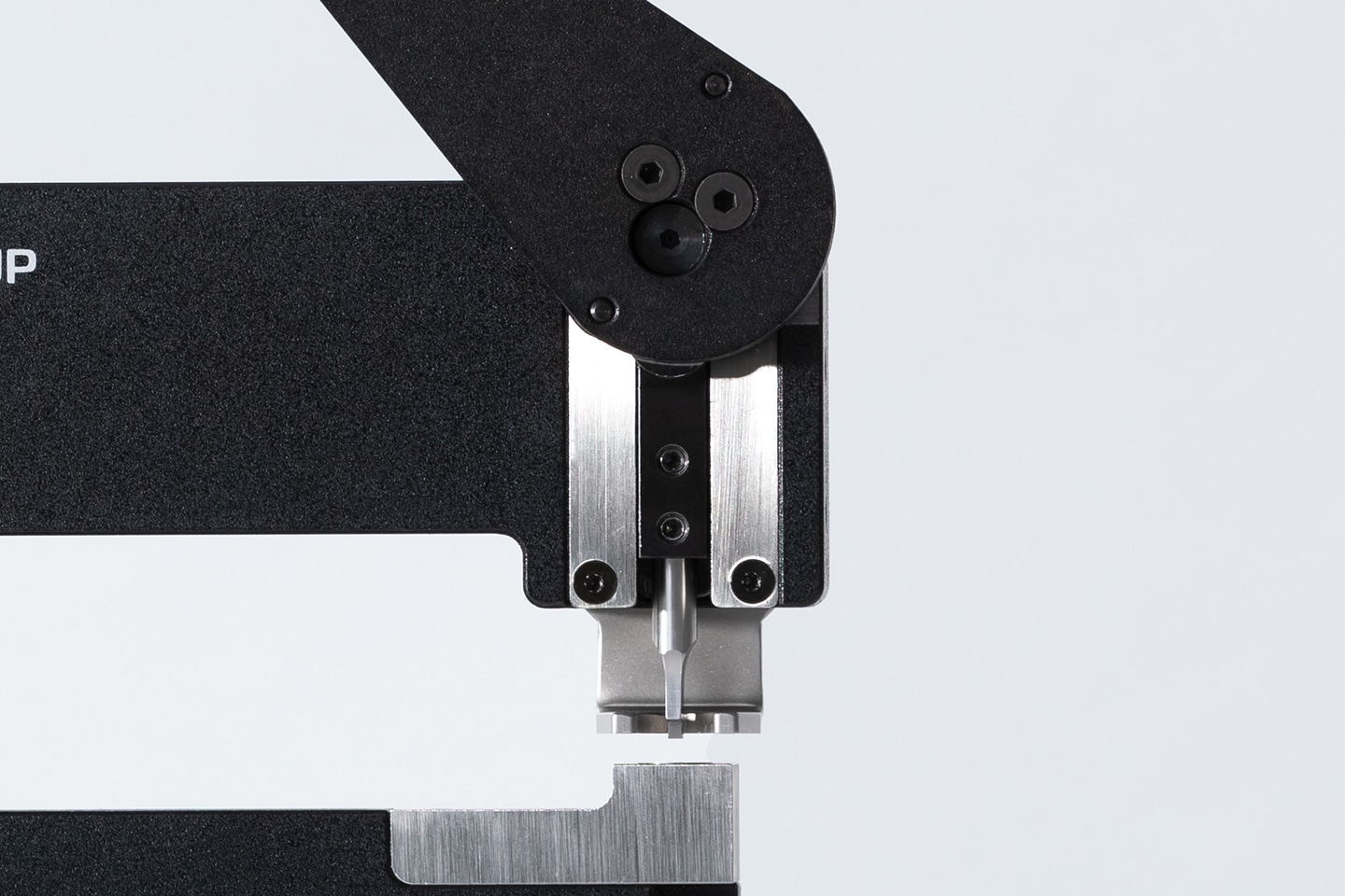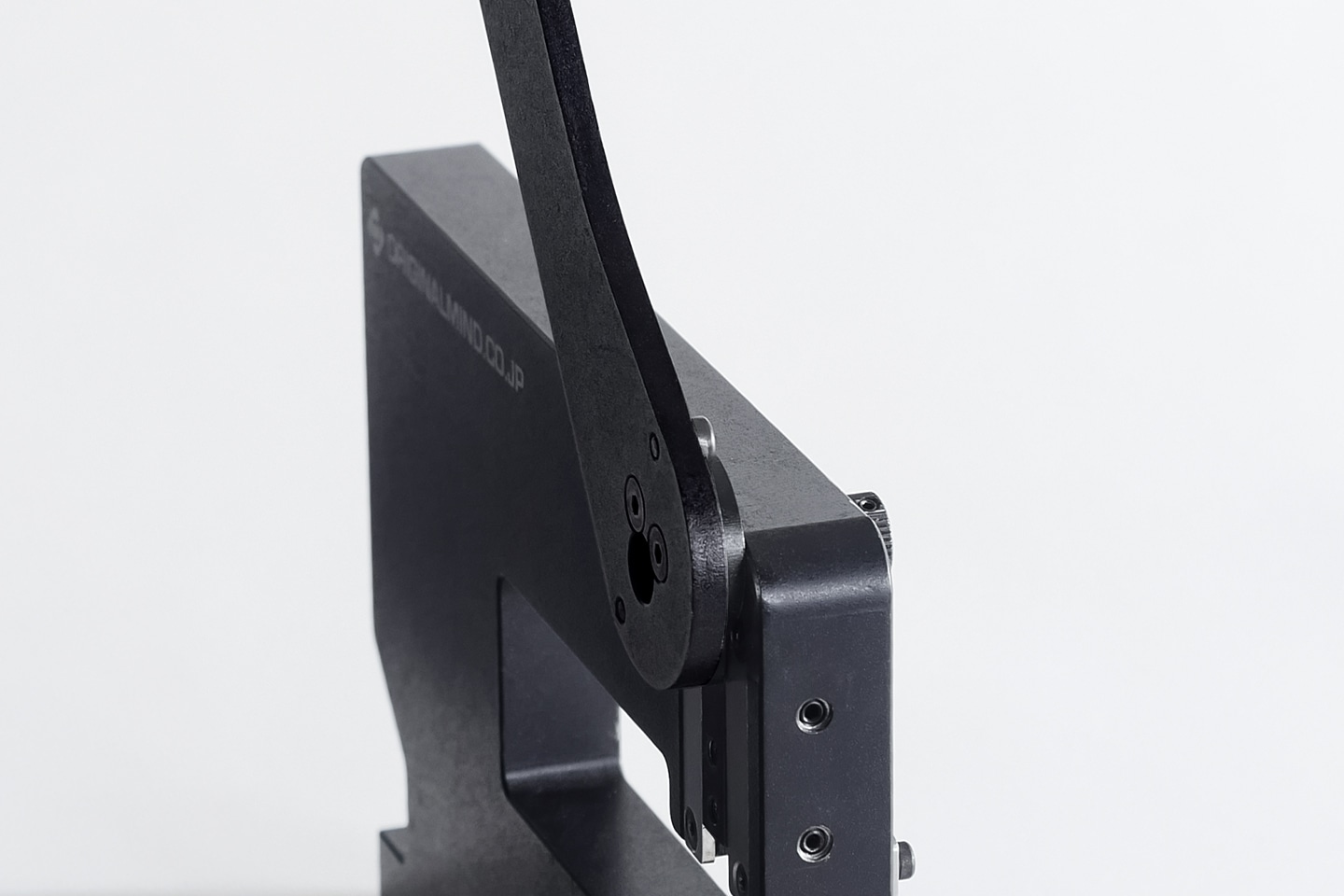 従来機種では片持ち構造だったハンドルのリンク機構を、「GOIGOI2」では両持ち構造に変更しました。さらに、U字状の板金でリンク機構を挟み込む構造とすることで、全体の剛性を高め、変形を抑制しています。これにより、打ち抜き時の負荷を安定して受け止め、負荷の大きい材料にも安心して対応できます。繰り返しの加工でも、安定した抜き心地を保ち続けられます。