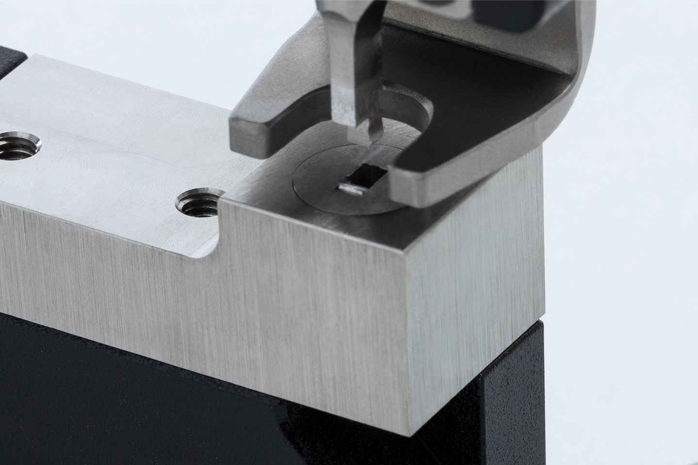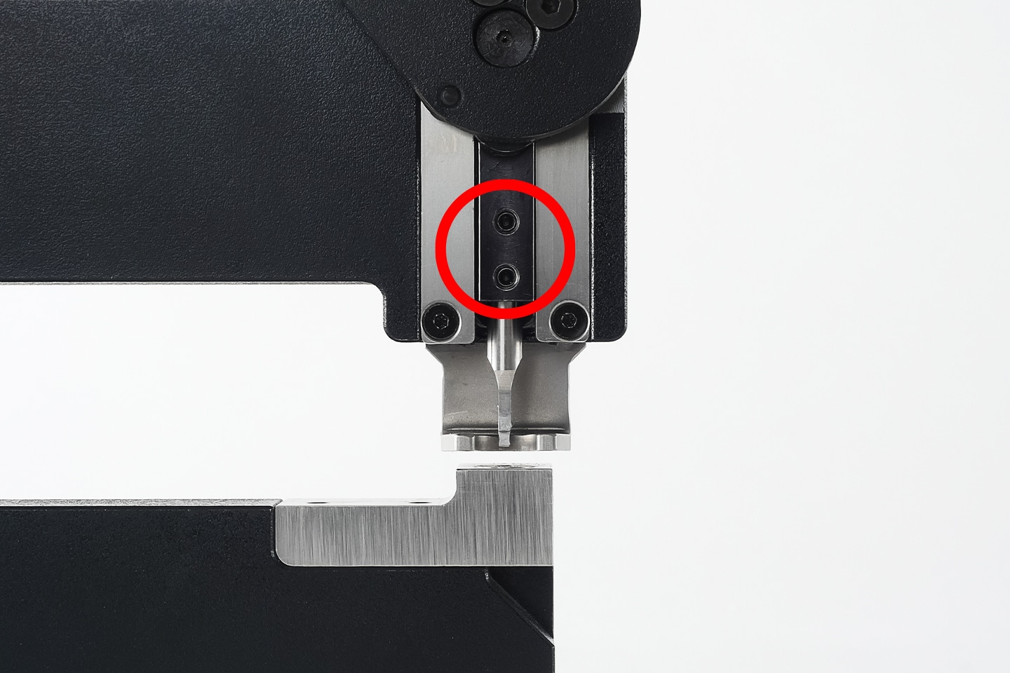 ダイフレームを固定するねじ穴を貫通穴から非貫通穴に変更しました。細かな切断片が溜まりがちだった溝を無くすことで、加工中やダイの交換時に清掃する必要がなくなりました。目の前の加工に集中しやすいよう、細部にも配慮しました。