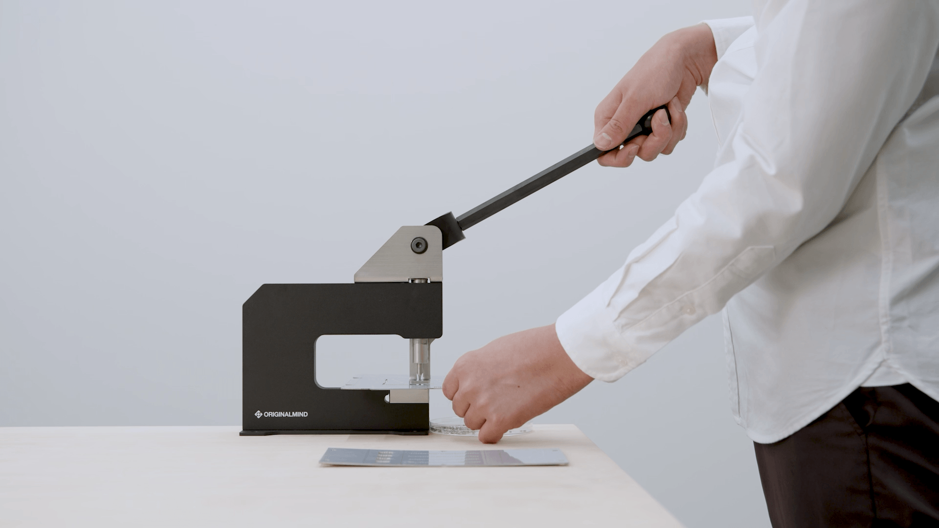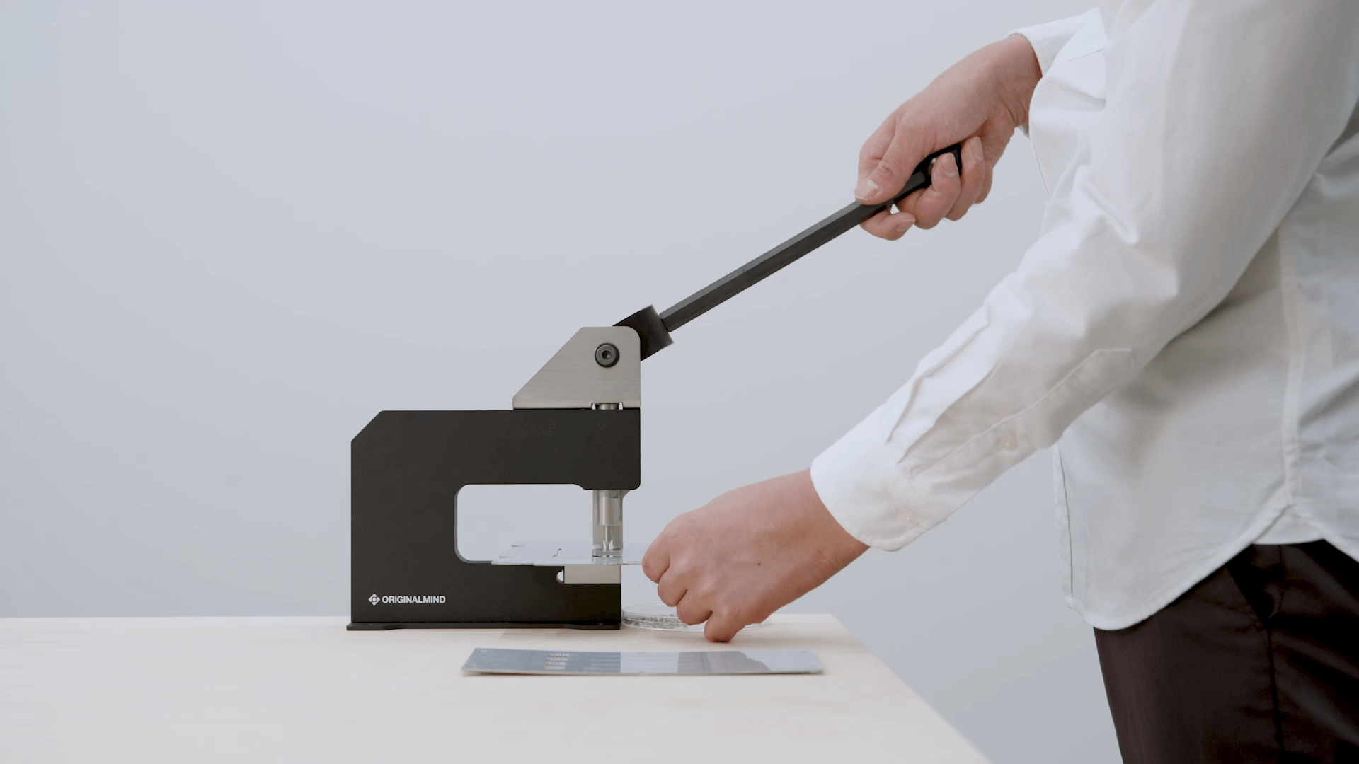 従来機種ではハンドルが長く、打ち抜き時に体を大きく動かす必要がありました。「GOIGOI2」ではハンドルを短縮し、打ち抜き角度を再設計。持ち手が体に近い位置で力を込めやすくなり、省スペースと打ち抜きやすさを両立しました。より安定した姿勢で、長く集中して加工を続けられる設計です。