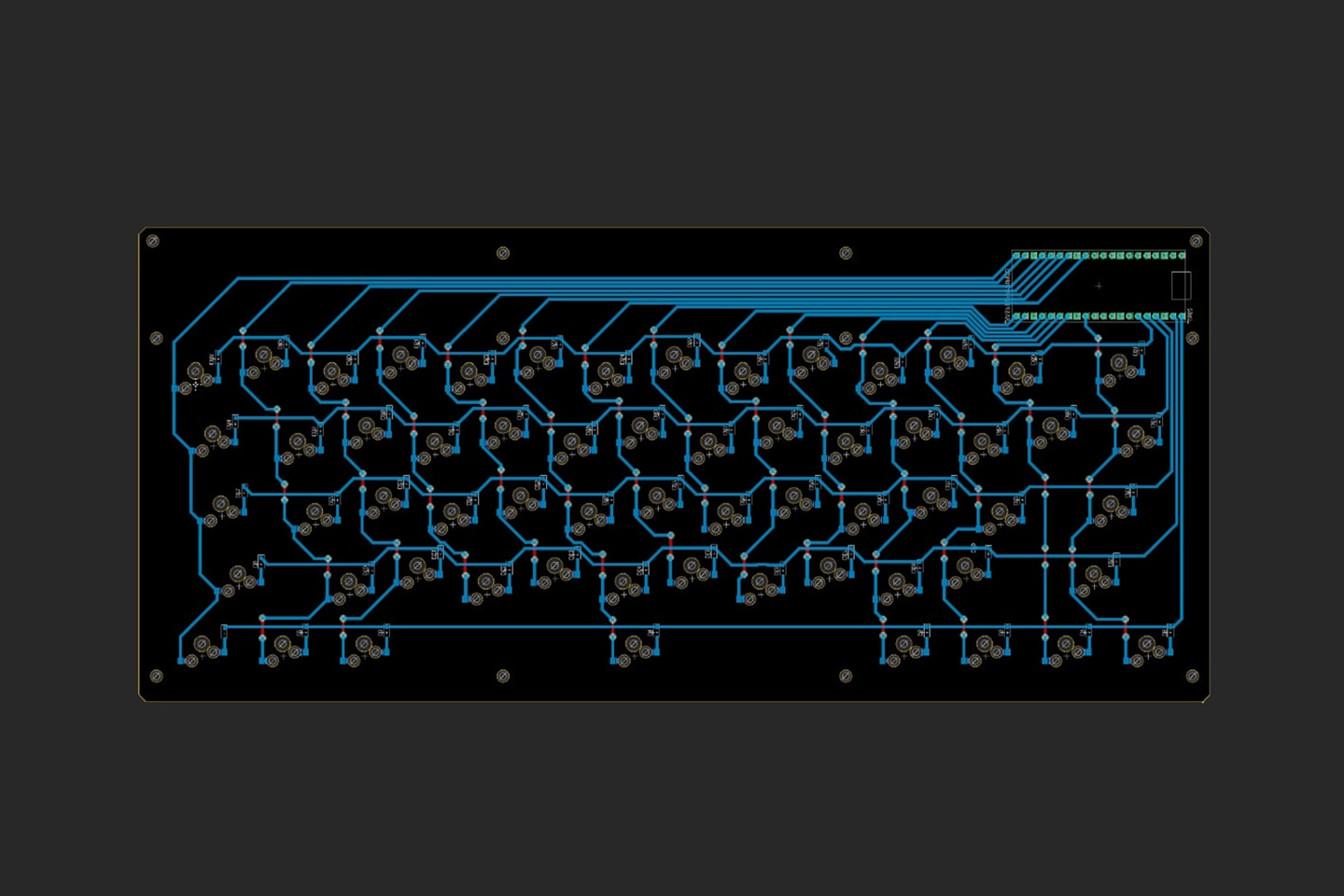 まずは、製作するキーボードのサイズを検討しました。フルサイズ(テンキー付き)のキーボードはキー数が多く、製作には時間がかかります。今回は展示会までの 1 ヶ月の期間で製作するため、60% サイズのキーボードを製作することにしました。
