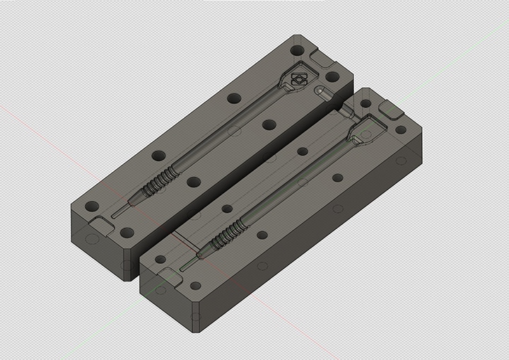 手動射出成形機「INARI M06/M12」を使用して、鉛筆の芯をインサートした簡易ペンを成形しました。データ作成から金型切削、射出成形までの一連の流れをご紹介します。