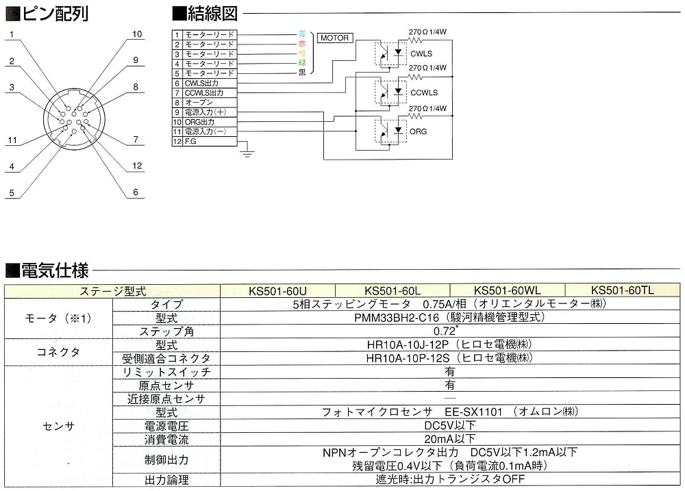 実際にドライバ(DB-5410)に接続し、正確な位置決め運転ができること、及び、内蔵センサ(CWリミット、CCWリミット、原点の3つのセンサ)が正常に動作することを確認しています。