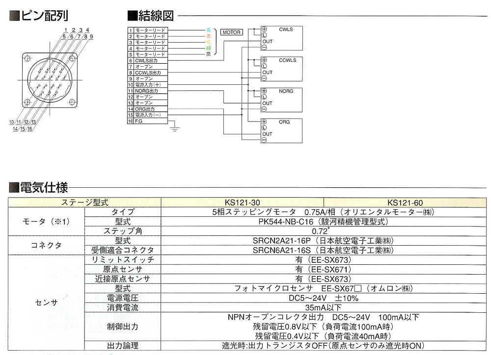 実際にドライバ(DB-5410)に接続し、正確な位置決め運転ができること、及び、内蔵センサ(CWリミット、CCWリミット、原点、近接原点の計4つのセンサ)が正常に動作することを確認しています。